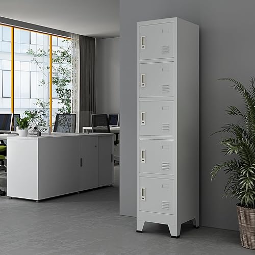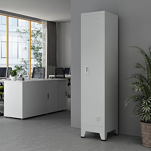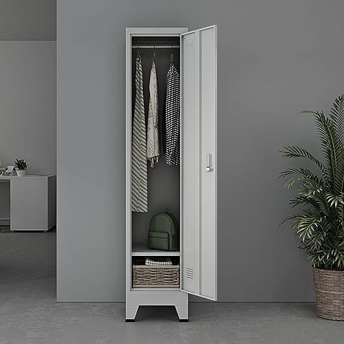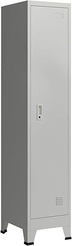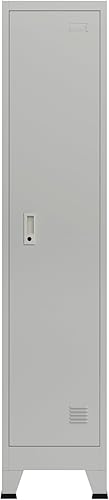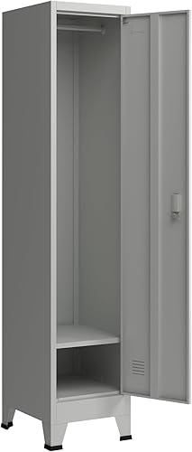 [en.casa] Metallschrank Joroinen mit 1 Tür abschließbarer Stahlschrank Schließfachschrank Spind Werkstatt Umkleideschrank Aufbewahrungsschrank 180 x 38 x 45 cm Grau