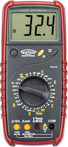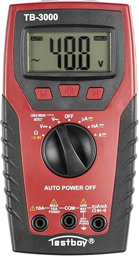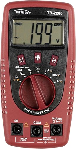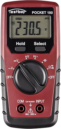 Testboy Pocket 100 Digital-Multimeter (Klein und handlich, Spannungsmessung bis 600 V AC/DC, LC-Display mit Hintergrundbeleuchtung, Data-Hold-Funktion, T-RMS), Rot/Schwarz