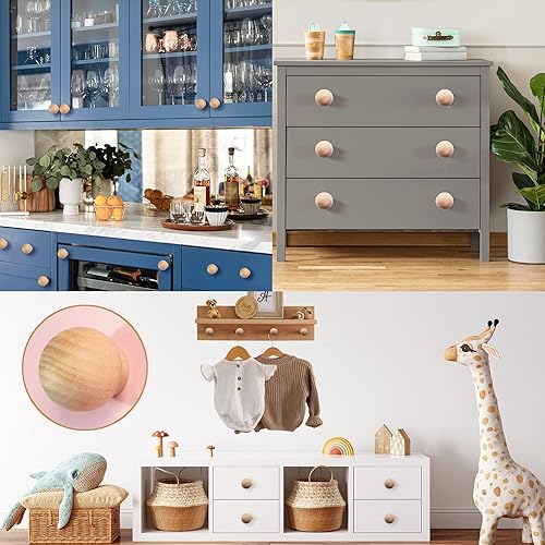EureKaEr 12 Stück Möbelknöpfe Holz, Holz Schubladengriff, 40 x 30 mm Runde Holzknöpfe, Schrankknöpfe für kommode, Holz Möbelgriffe, Küche Schranktüren Griffe Holz Knöpfe
