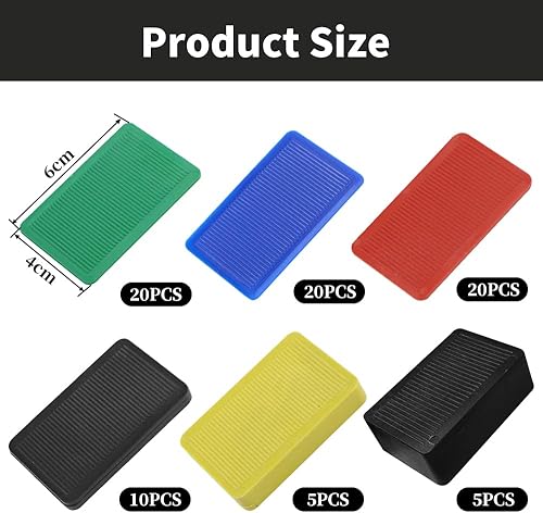 80 Stück Kunststoff Unterlegplatten 40 x 60mm Mehrfarbige Unterlegplättchen aus Kunststoff Plättchen aus Kunststoff Abstandshalter Keile in den Größen 2, 2,8, 3,5, 5, 10, 20 mm