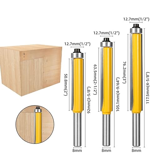 BIGP 3 Stück 8mm Schaft Bündigfräser Set, Top mit Kugellager Lagerspülbohre, extra langes, gerades Fräser Schneidmesser für Holzbearbeitung