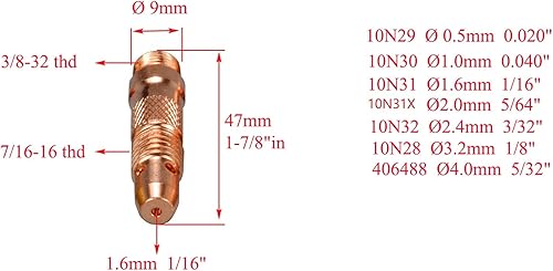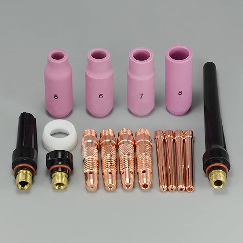 RIVERWELD TIG-Spannzangenkörper 10N30 10N22 1,0mm, 10N31 10N23 1,6mm, 10N32 10N24 2,4mm, 10N28 10N25 3,2mm, Aluminiumoxid-Düsenkeramikbecher 10N-Serie-Set für SR WP 17 18 26 WIG-Schweißbrenner 16Stü