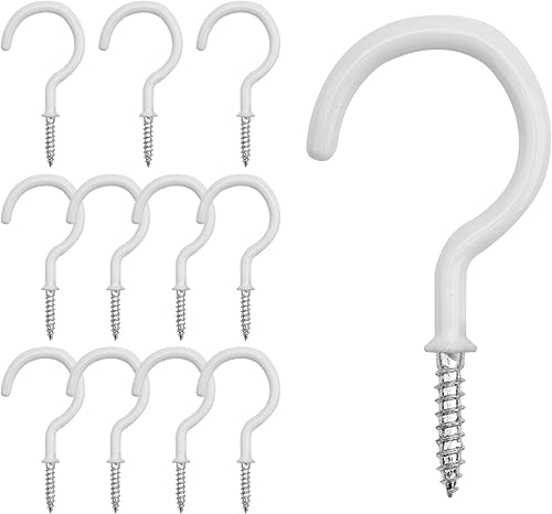 KINGLAKE 12 Stück Schraubhaken Groß, Weiß Hakenschraube, M5X 70mm Hakenschrauben, Deckenhaken, Wandhaken zum Schrauben, Cup Haken Schrauben, Zum Aufhängen von Schlüsseln, Tassen, Blumentöpfen