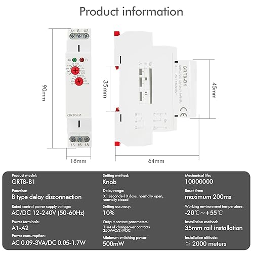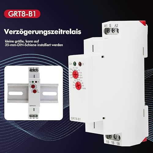 Verzögerungsrelais, Mini-Abschalt Verzögerung Zeitrelais AC/DC12V~240V Ausschaltverzögerungs Relaiszeitschaltuhr 35mm DIN-Schienentyp GRT8-B1