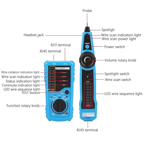 Akozon Wire Tracker, FWT11 Handheld RJ11 RJ45 Telefonkabel Tracker Ethernet LAN Netzwerkkabel Detektor, Tester für Netzwerkkabel Collation, Telefonleitung Tester, Durchgangsprüfung
