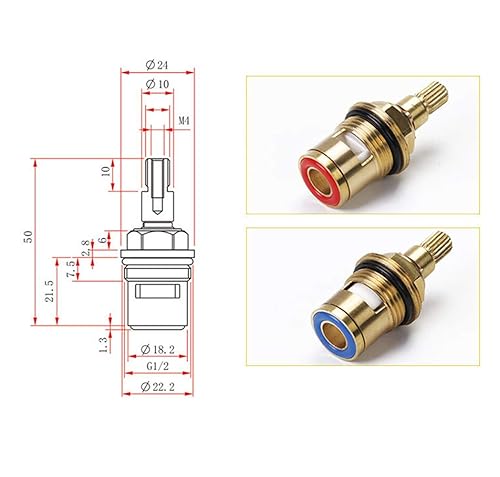 Lezed Wasserhahn Ventiloberteil 1/2' zoll, Oberteil Ventiloberteil, Wasserhahn-Kartusche Ersatz Ventile, Keramik-Oberteil Armaturen, Messing Scheibe, Vierteldrehung Armaturen (2er Pack Kalt und Warm)