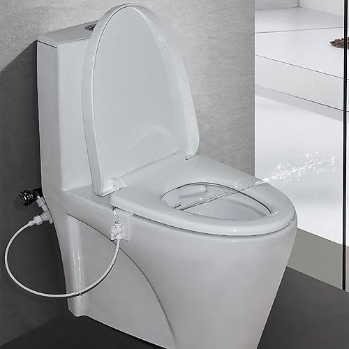 Fiacvrs Selbstreinigende Düse, Bidet-Aufsatz für WC-Wassersprüher, für Toilettensitz, einfach zu installieren, nicht elektrisches Bidet mit verstellbarem Frischwasserstrahl (weiß)
