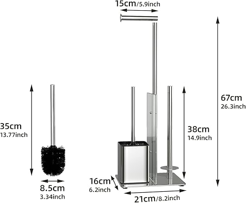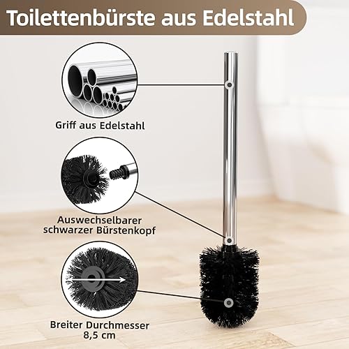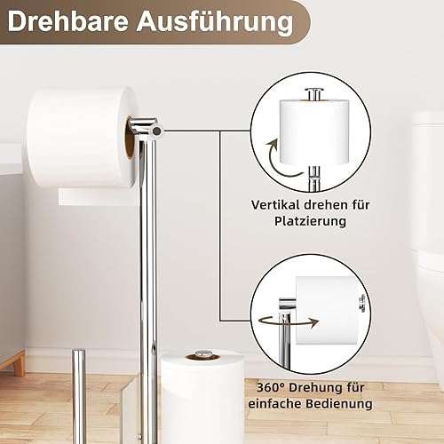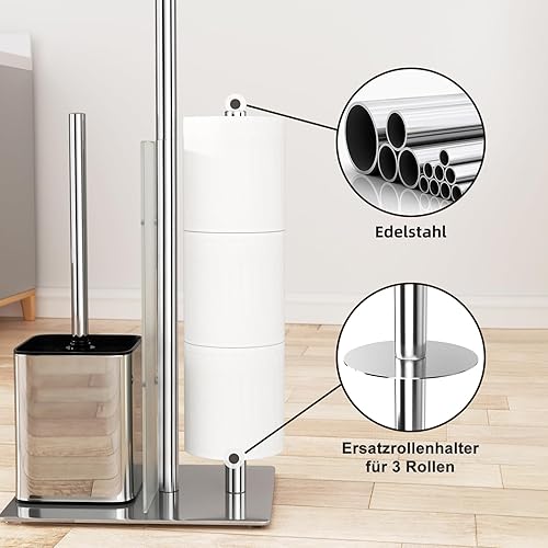 Edelstahl Klopapierhalter Stehend mit Klobürste - Toilettenpapierhalter mit WC Bürste, WC Garnitur mit Toilettenpapierhalter und Toilettenbürste, Klorollenhalter Stehend mit Glasregal (Schwarz Matt)