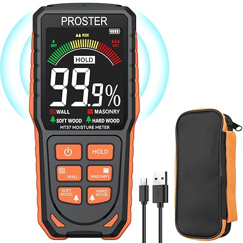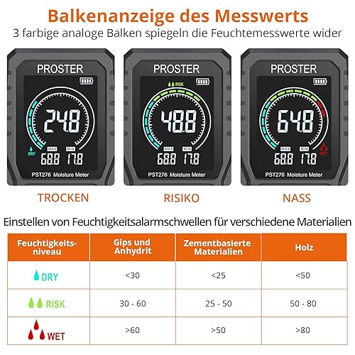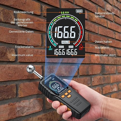Proster Feuchtigkeitsmessgerät Wand Kugelform Sphärisches wiederaufladbares Feuchtemessgerät Mauerwerk mit LCD Bildschirm für Wände Mauerwerk 0-40mm Analysetiefe für Wand Holz Mauerwerk Beton