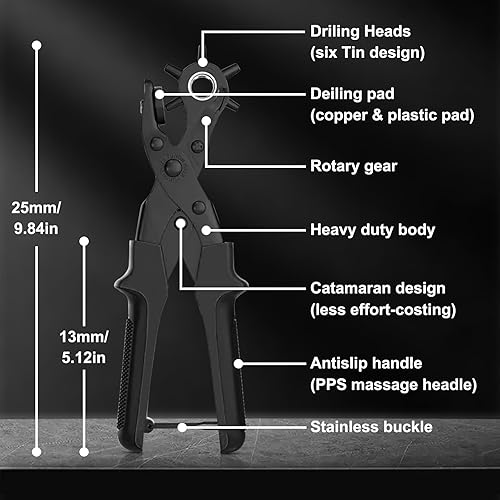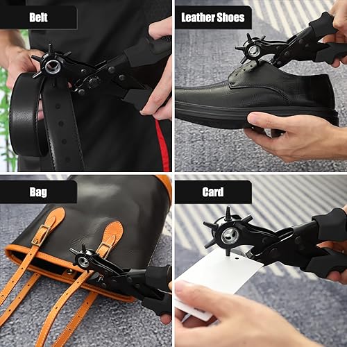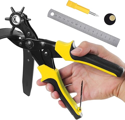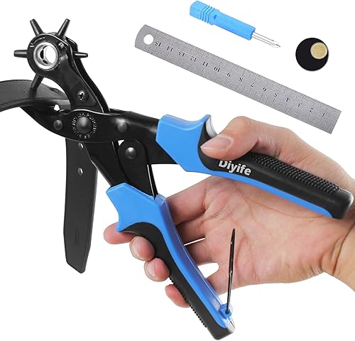 [Volles Set] Leder Locher, Diyife® Gürtel Locher, Heavy Duty Revolver Lochzange mit Extra Punch Platten und Lineal, Multi Sized Puncher für Gürtel, Kunsthandwerk, Karte, Gummi, etc.