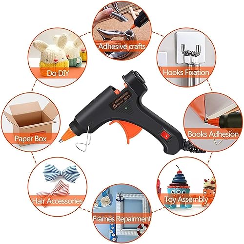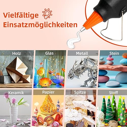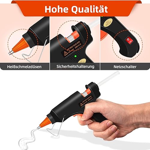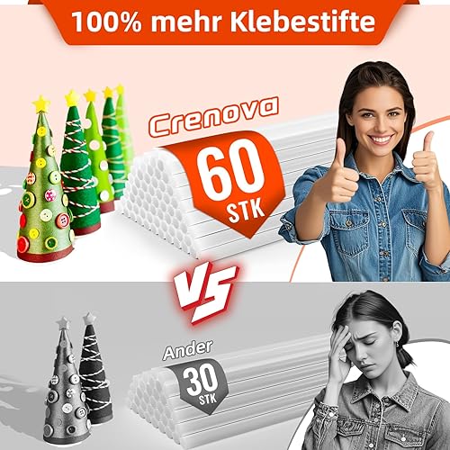 Crenova Feuerfest Heißklebepistole Klebepistole + 60 Mini Heißklebesticks Transparente Klebesticks für DIY Kleine Handwerk und schnelle Reparaturen in Haus & Büro, 20Watt Klebepistolen