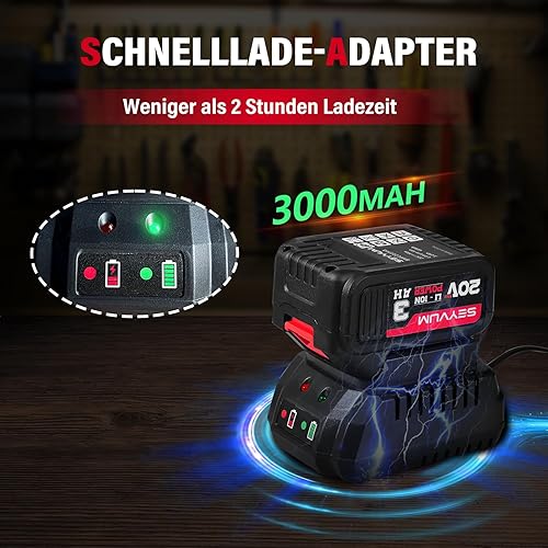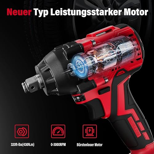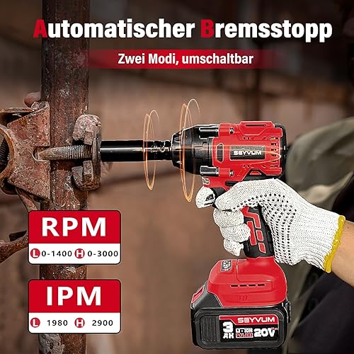 SEYVUM Akku Schlagschrauber 450Nm hohes Drehmoment mit 3.0Ah Lithium Batterie, 1/2 Zoll Bürstenloser Elektro Schlagschrauber für Haus und Auto, 4 Stecknüsse, Schnellladegerät