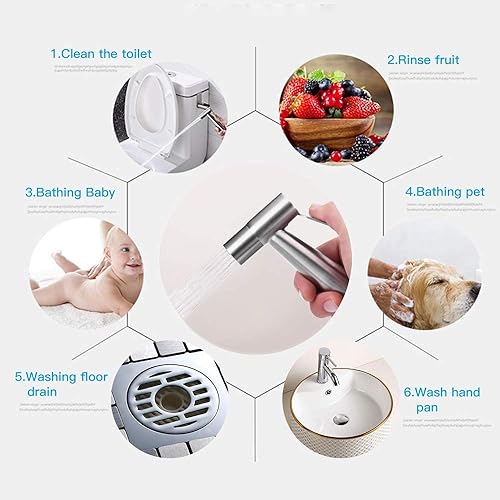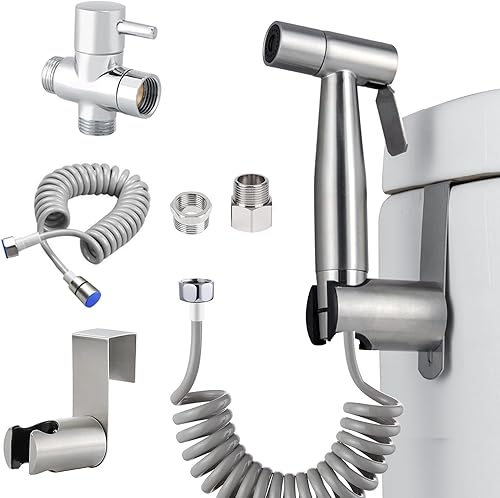 MUMENG Bidet Handbrause für Toilette Set mit 3 Wege Ventil(G1/2'et G3/8'),Edelstahl Bad Bidet Brause Duschkopf Aufsatz,Handbrause Dusche für die Tägliche Körperhygiene und Badreinigung