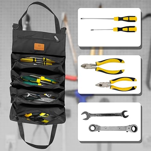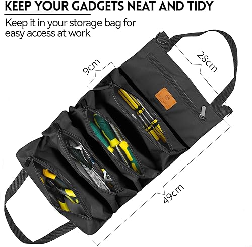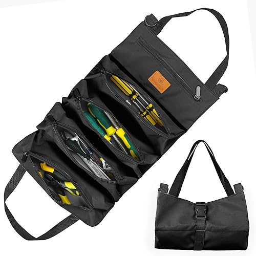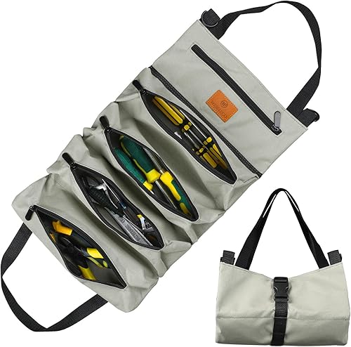 Werkzeug Rolltasche, Canvas Schraubenschlüssel Werkzeugtasche, Mehrzweck Rolltasche mit 5 Reißverschlusstaschen, Ideal für Klempner Handwerker und Elektriker (Grün)