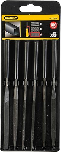 Stanley Nadelfeilen-Set, 6 teilig (150 mm Klingenlänge, Karbon-Stahl, ergonomischer Bi-Material Handgriff) 0-22-500
