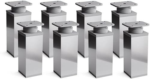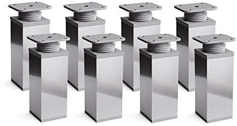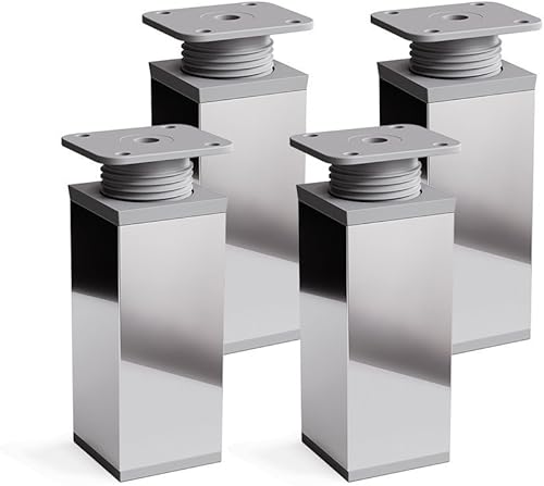 sossai® Design-Möbelfüße MFV1 | höhenverstellbar | 4er Set | Vierkant-Profil: 40 x 40 mm | Farbe: Chrom | Höhe: 60mm (+20mm) | Hochwertige Holzschrauben inklusive
