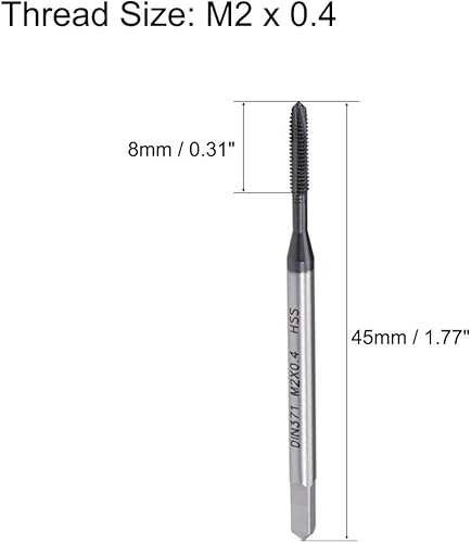 sourcing map 2St Spiralspitze Gewindebohrer H2 Toleranz TICN Beschichtet Rundschaft Vierkant Ende DIN371/376 M2 x 0,4
