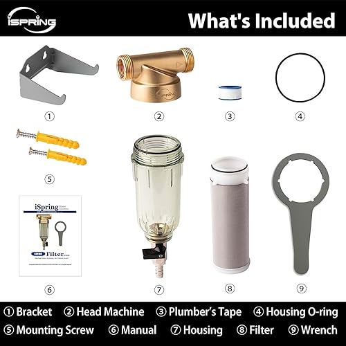 iSpring WSP-50 Rückspülfilter Wasserfilter Filter, Wiederverwendbarer Spin-Down-Sedimentwasserfilter, Vorfilter für Brunnenwasserschlauch, 50 Mikron