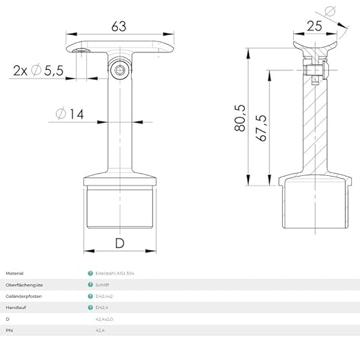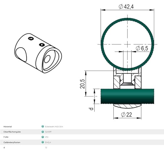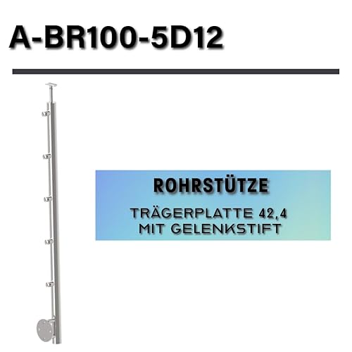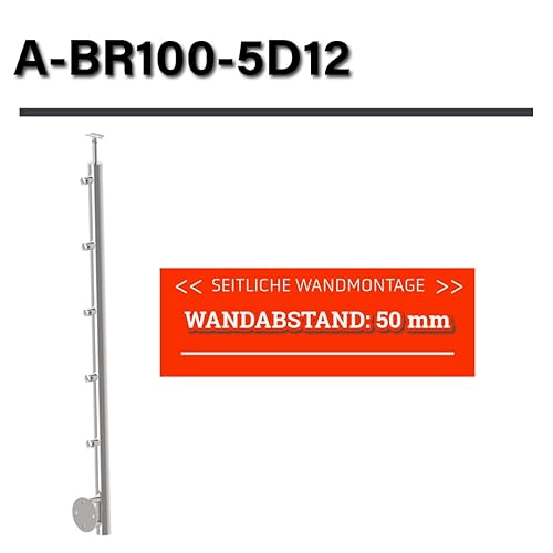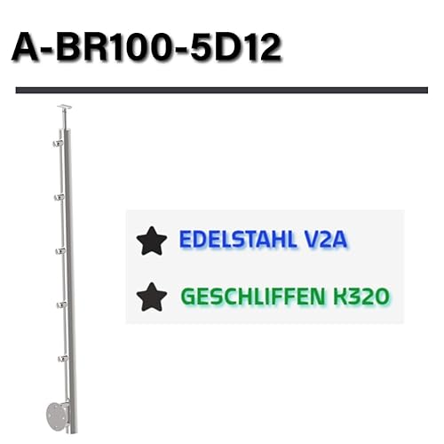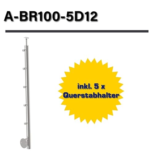 Sellon24® Edelstahl Geländerpfosten Seitenverankerung Ø42,4 Bauhöhe 1000mm mit 5x Querstabhalter Ø12,0 Geländer V2A geschliffen K320 Balkon seitlich Pfostenrohr Rundrohr Terrasse vorgesetzt Rohr