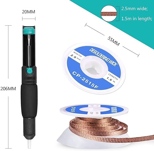 Tabiger Entlötpumpe Set,Entlötpumpe&2 Entlötlitze,Desoldering Wick&Desoldering Pump,2pcs Entlöten Docht (2,5 mm Breite, 1,5 m Länge),Lötmittel Sauger Vakuumpumpe Solder Removal Tool