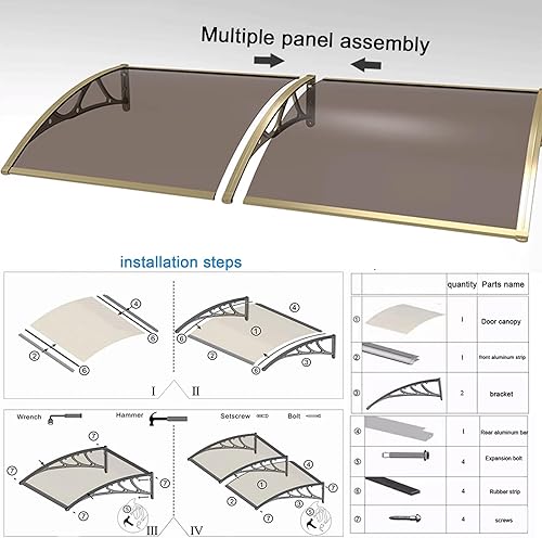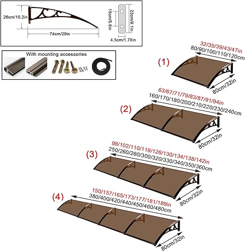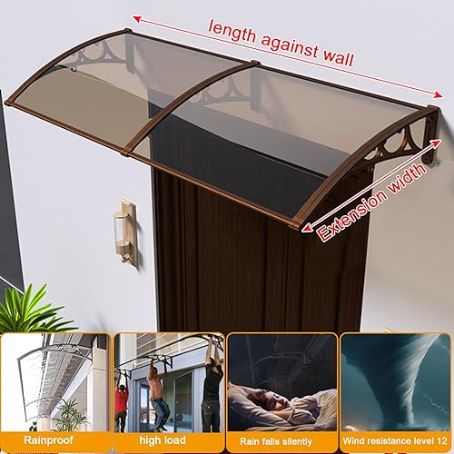 Vordach Haustür Überdachung,Vordach Überdachung Haustürvordach,99% Uv-Block Haustürvordach Pultvordach,60/80/100/120/150 cm Breite Optional,Vordach für Eingangstür (80x120cm/32 x47)