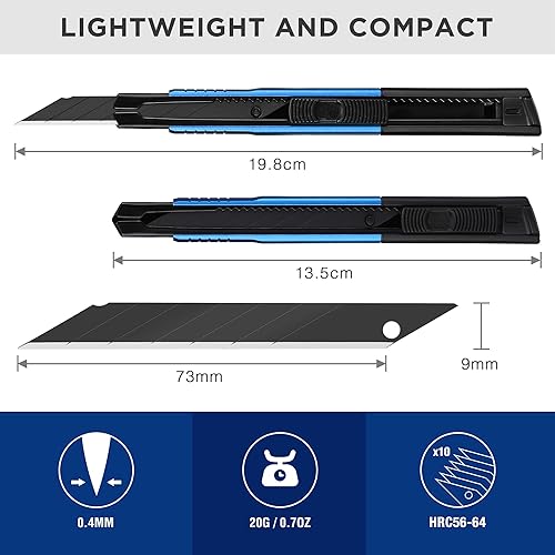 WORKPRO 5 Stück Cuttermesser Set 9mm aus Aluminium mit 10 Abbrechklingen, Cuttermesser Profi Tragbares Einziehbares Universalmesser Teppichmesser, Geschwärzte 30° Klingen extra scharf, Für Heimwerker