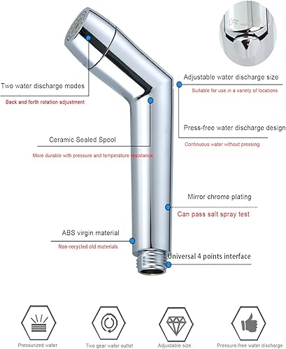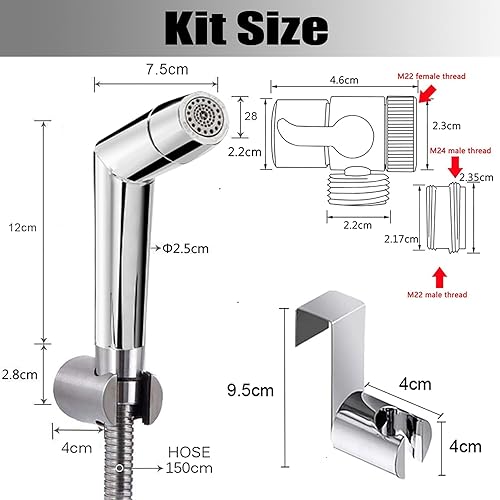Bidet Handbrause Set, einstellbarer Sprühkopf ABS Chrom Baby Stoffwindelsprüh Kit mit Wasserhahnspender, Schlauch- und Hakentoilette oder Wandhalterung