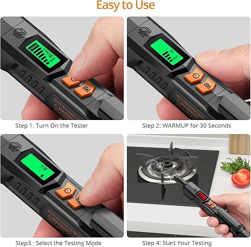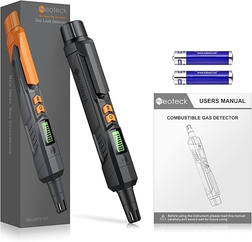 Neoteck Gasmelder Gaslecksuchgerät mit Visuellem und Akustischem Alarm Tragbarer Gasdetektor zum Aufspüren von brennbaren Gasleckquellen wie Methan, Propan für zu Hause(Orange)