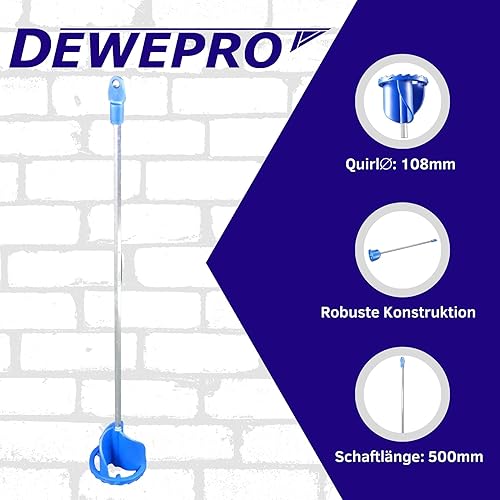 DEWEPRO® Farbrührer mit gezacktem Kunststoffkopf, Farbmischer ø80x500mm, Rührquirl zum Verrühren von Farben und Flüssigkeiten