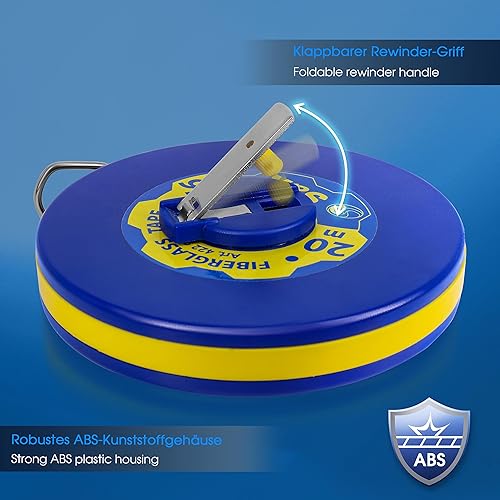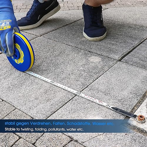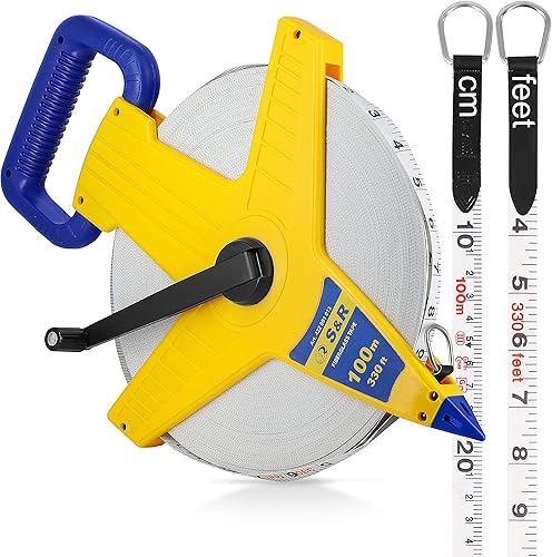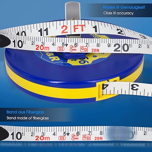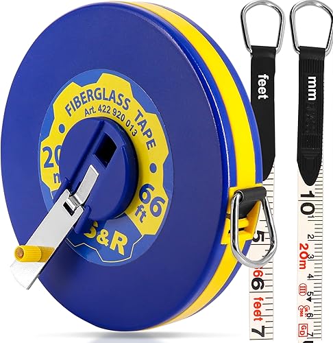 S&R Bandmaß Fiberglas 20m / 66 Ft, Breite 13mm, Rollmeter METER und ZOLL doppel Seiten markiert, Rollmaßband 20 m Maßmeter Kapselbandmass