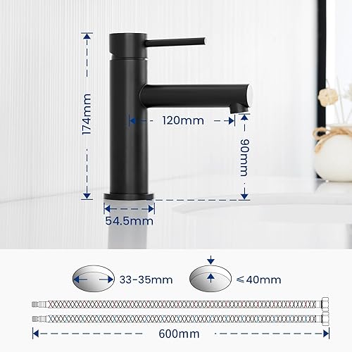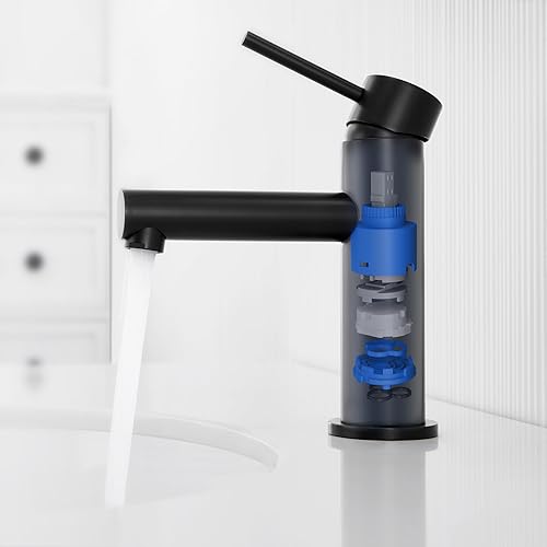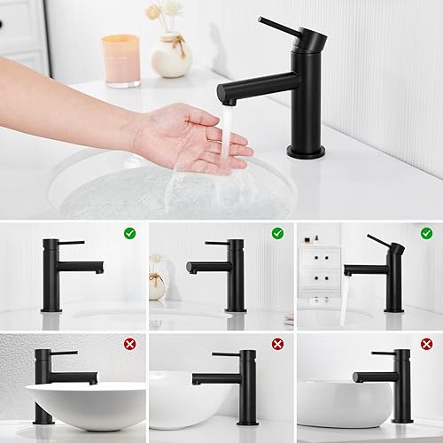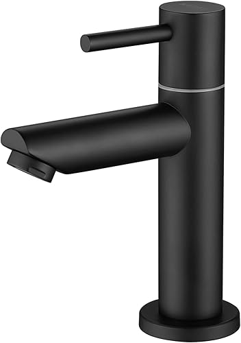 CECIPA Kaltwasserhahn Schwarz mit Ersatz-Bubbler, Waschtischarmatur mit Auslauf Höhe 93.4 mm für Gäste WC, Kaltwasserarmatur Gäste WC für Badezimmer
