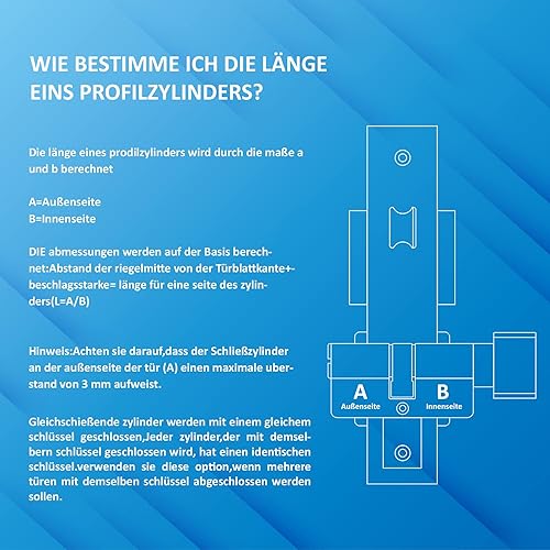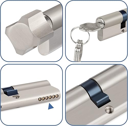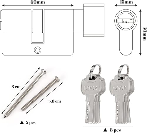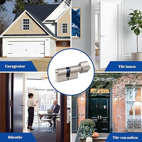 Hengsong Profil-Knaufzylinder Schließzylinder 30/30 Metallsilber-Knaufzylinder, inkl. 8 Schlüssel
