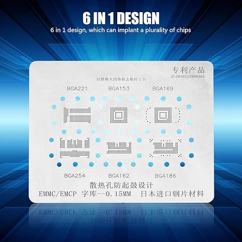 6 in 1 Universal Net Stencils BGA Stencils für BGA153/162/169/186/221/254/EMMC Lötzubehör