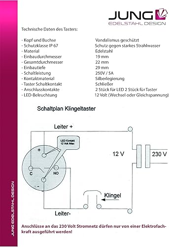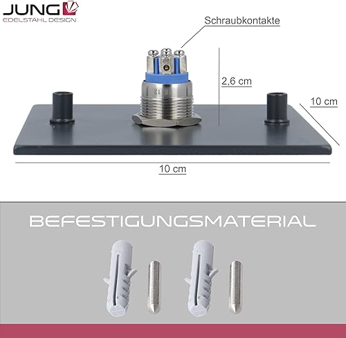 Jung-Edelstahl-Design Türklingel Bochum Klingel V2a Edelstahl Led (weiss) beleuchtet. Klingelschild 10x10 cm. Moderne Unterputz Klingelplatte in verschiedenen Größen wählbar. Ohne Gravur