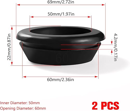 YIXISI 2 Stücke Durchmesser 60 * 70 mm Gummitüllen, Geschlossene Gummitüllen, Kabeldurchführung Gummistopfen, Gummitülle Elektrischer Leiter Dichtungsring, für Kabelschutz, Kabelkanal