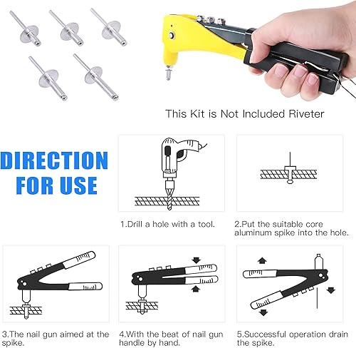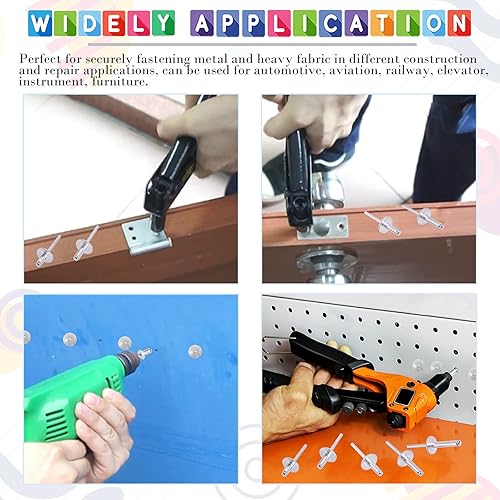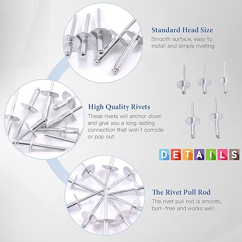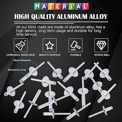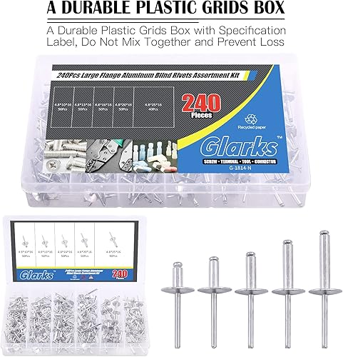 Glarks 240 Stück 3/16 Zoll x 3/8 Zoll / 1/2 Zoll / 5/8 Zoll / 3/4 Zoll / 1 Zoll große Flansch-Blindnieten 5 Größen Aluminium Popnieten Sortiment Set