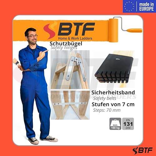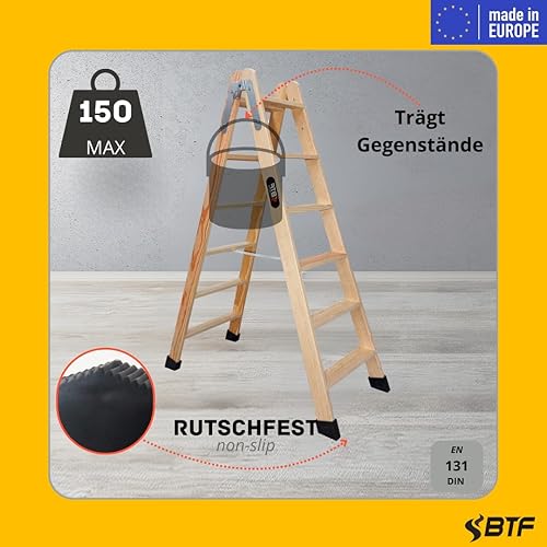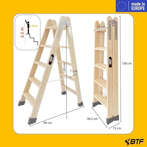 BTF Leiter aus kiefernholz, doppelt, zertifizier, ideal für professinelle Maler, Gips, Elektriker oder bis zu lhrem Zuhause (5 Stufen)