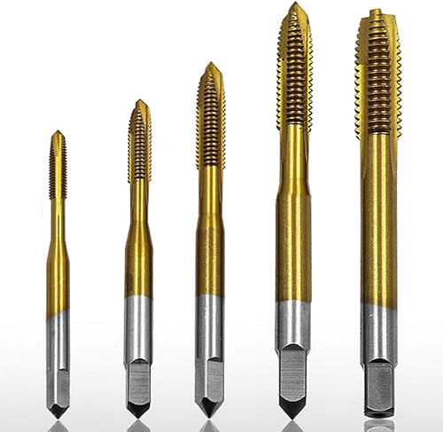 Gewindebohrer Set Gewindeschneider M3 M4 M5 M6 M8 5Stück Ratschengewindebohrfutter HSS Verstellbarer T-Griff Maschinen-Ratschenschraube Gewindefräser Titan-beschichtet Werkzeughalter