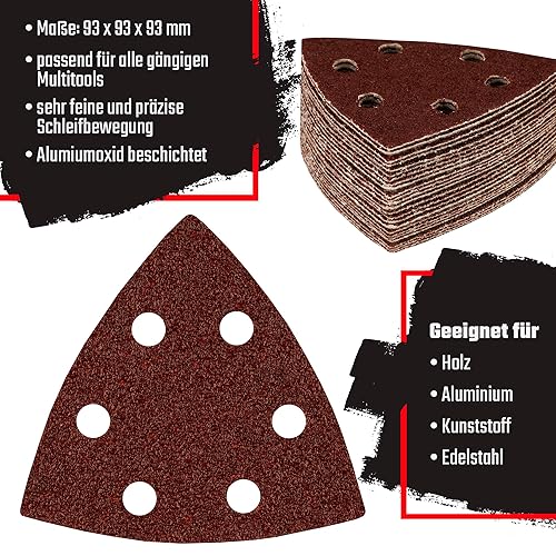 Delta-Schleifdreiecke │ 180 Stück │ 6-Loch │ 93 x 93 x 93 mm │ je 30 x Korn 40/60/80/120/180/240 │ für Deltaschleifer │ Schleifblätter │ dreieckige Schleifpads │ Schleifpapier