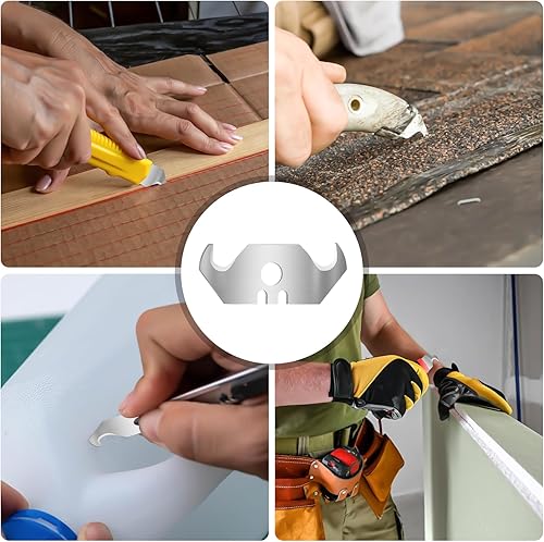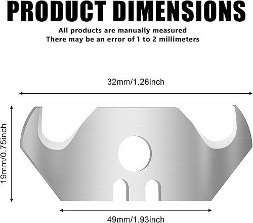 60 Stück Hakenklingen für Teppichmesser Trapezhakenklingen 49 x 32 x 19mm, 0.6 Klingenstärke mit Lochung Hakenklingen für Teppichmesser Verpackungen Bodenbeläge Plastik, Ersatzklingen