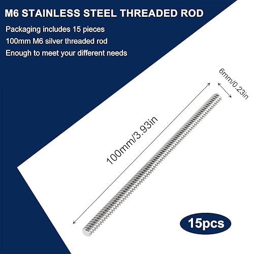 SRTSTR 15 Stück Gewindestange M6 x 100mm Gewindestange M6 Edelstahl Gewindestifte M6 Gewindestange Gewindebolzen Vollgewindestange Voll Gewindestab Gewindestifte