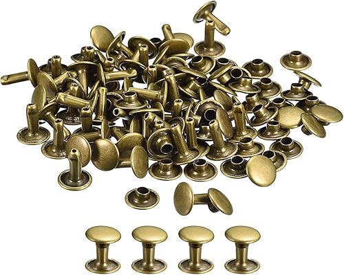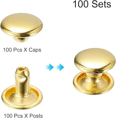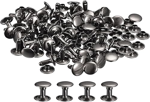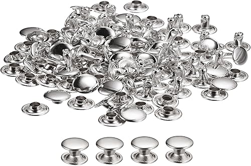 QUARKZMAN 100 Sets Leder Nieten, 7x10mm Doppelt Kappe Nieten Metallnieten Runde Nieten Hohlnieten Niete für Lederhandwerk Reparatur DIY Geldbörsen Gürtel Taschen Schuhe, Silberfarben