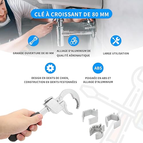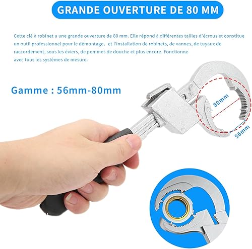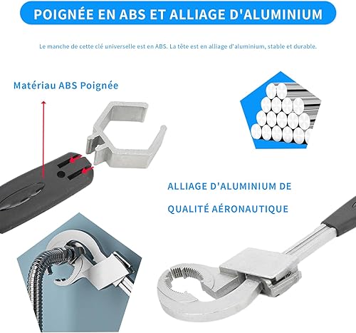 Universeller Verstellbarer Doppelendschlüssel, Multifunktionaler Badezimmerschlüssel, 80-mm-Maulschlüssel mit Offenem Ende, Verstellbare Feder für die Demontage und Montage von
