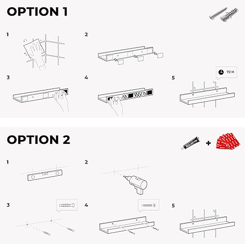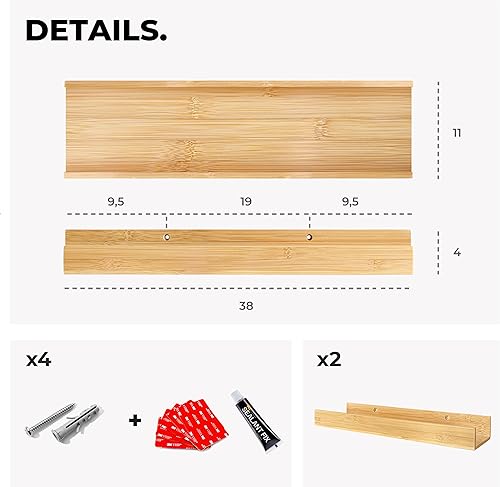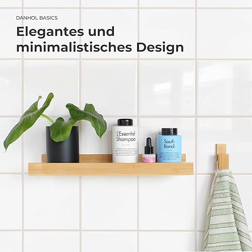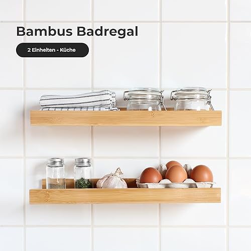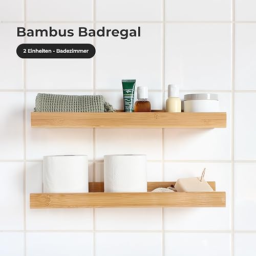 danhol® Badregal | Ohne Bohren (Selbstklebend) | Wandregal ohne Bohren für Badezimmer Küche Wohnzimmer | Kleberegal Bad aus Bambus | 2 Einheiten