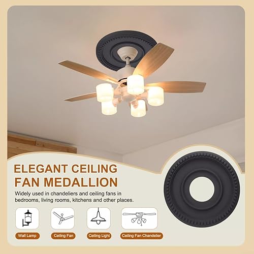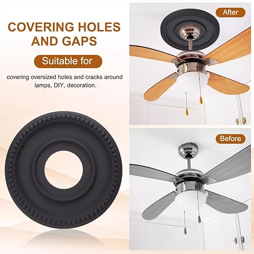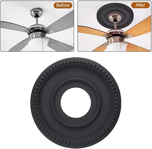 HOHOVYVY Deckenrosette,Stuckrosette,Schwarzes Rundes Medaillon PU-dekorative Deckenventilator-Leuchten Deckt Platte Ab