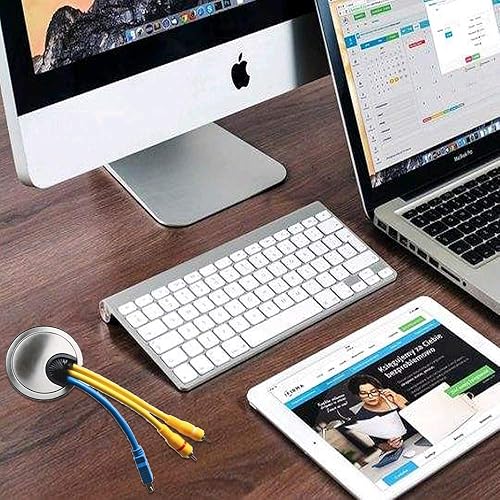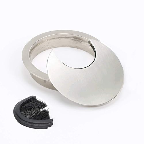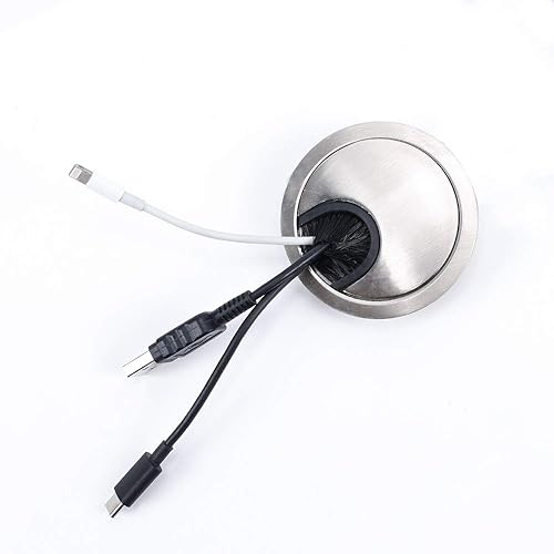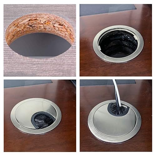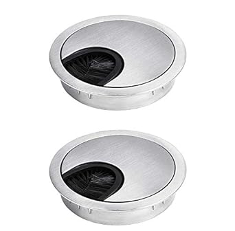 HO2NLE 2er Kabeldurchführung Schreibtisch Kabeldurchlass 60mm Kabelabdeckung Kabeldose mit Bürste Tischdurchführung für Tisch Büro Arbeitsplatten Edelstahl Rund
