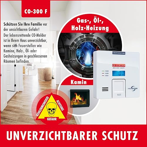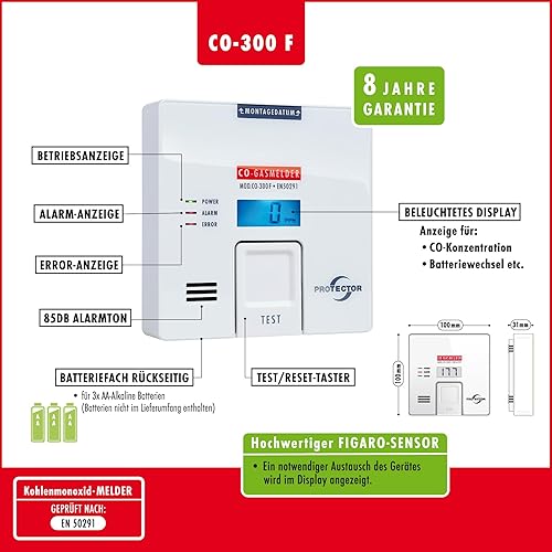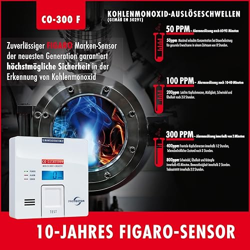 Protector CO-300F batteriebetriebener CO-Gasmelder | Präziser, langlebiger CO-Melder mit FIGARO-Sensor & beleuchtetem Display | Detektiert Kohlenmonoxid für maximale Sicherheit | Wohnwagen & Wohnmobil