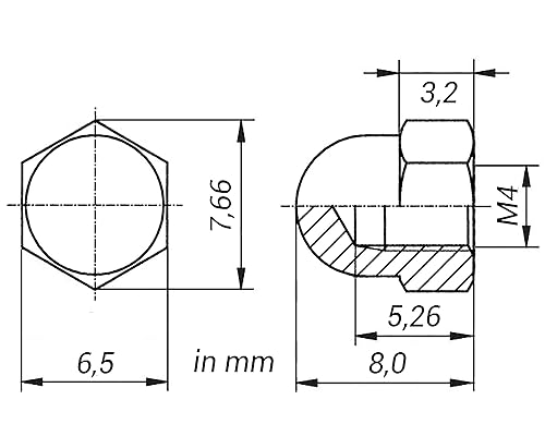 DIN 1587 Sechskant-Hutmutter Stahl verzinkt M3 * 25 Stück