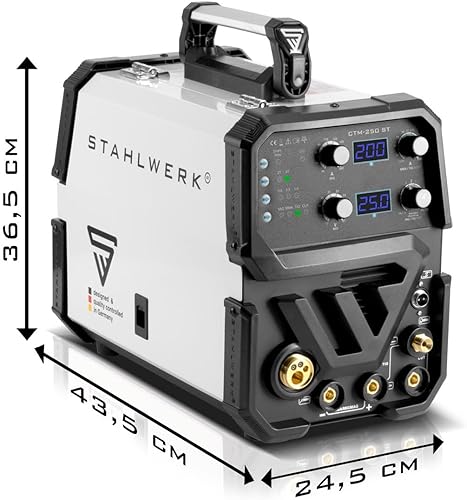 STAHLWERK CTM-250 ST Kombi-Schweißgerät WIG + MIG/MAG + MMA/E-Hand + CUT/Plasma mit 200 Ampere und 50 Ampere Plasma-Funktion, viele Schweißparameter einstellbar - 7 Jahre Garantie