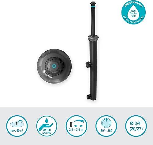 Gardena Sprinklersystem Versenkregner MD40/300: Pop-up Bewässerungssystem über höhere Pflanzen bis 40 m² Fläche, Reichweite von 2,5-3,5 m, mit Rotationsdüse, 3/4 Zoll Außengewinde (8233-20)